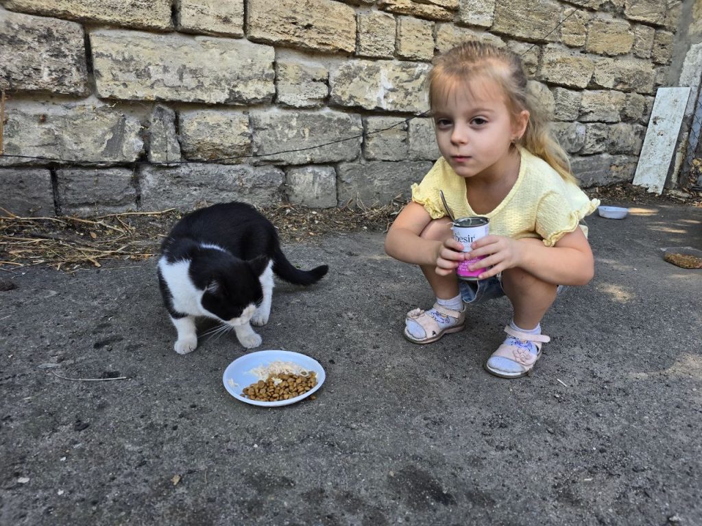Since the start of the war, Linda has personally taken on the daily care of street cats. Today, she looks after around 80 cats living in courtyards, near the sea slopes, and in the military sanatorium area. All are sterilized and receive medical care.